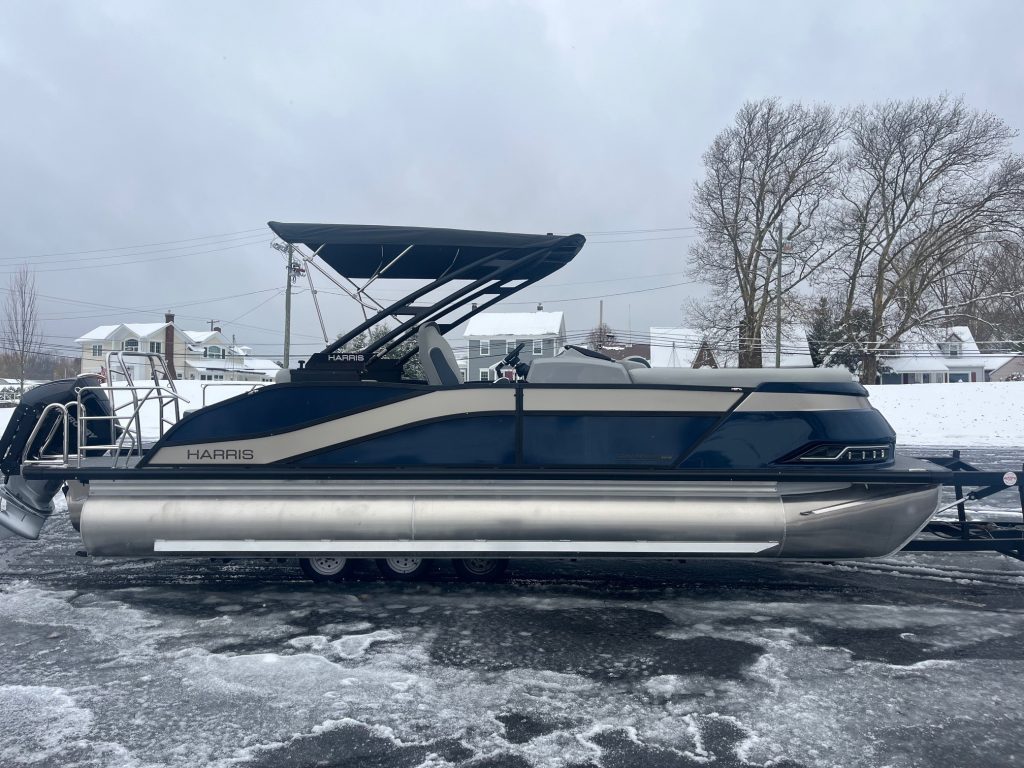 2026 Harris Sunliner 230 tritoon PRICE: Call for Discounted Price! DETAILS: TOTALLY REDESIGNED FOR 2026! Be the first to take home Harris’ newly redesigned Sunliner series! We loaded this tritoon with tons of options to celebrate the remodel. This boat has a 150hp Mercury outboard with hydraulic steering, power bimini, raised helm, Wetsounds 600 audio…